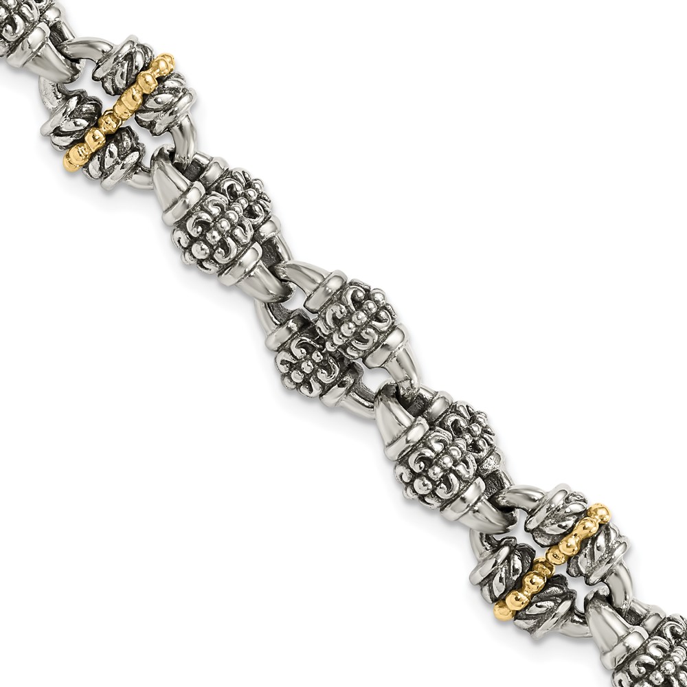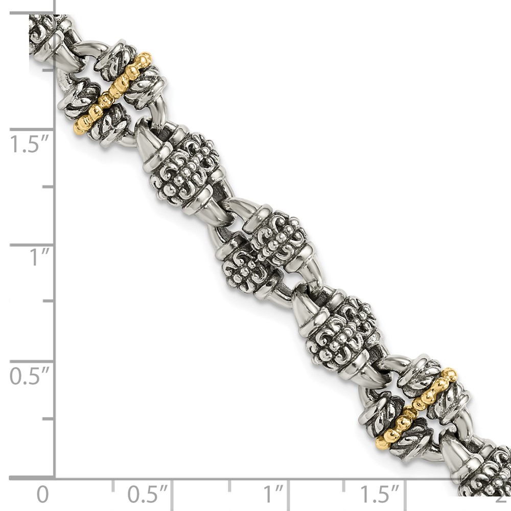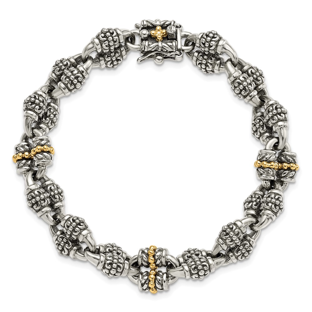 Sterling Silver w/14k Accent Antiqued Beaded Fancy Link Bracelet