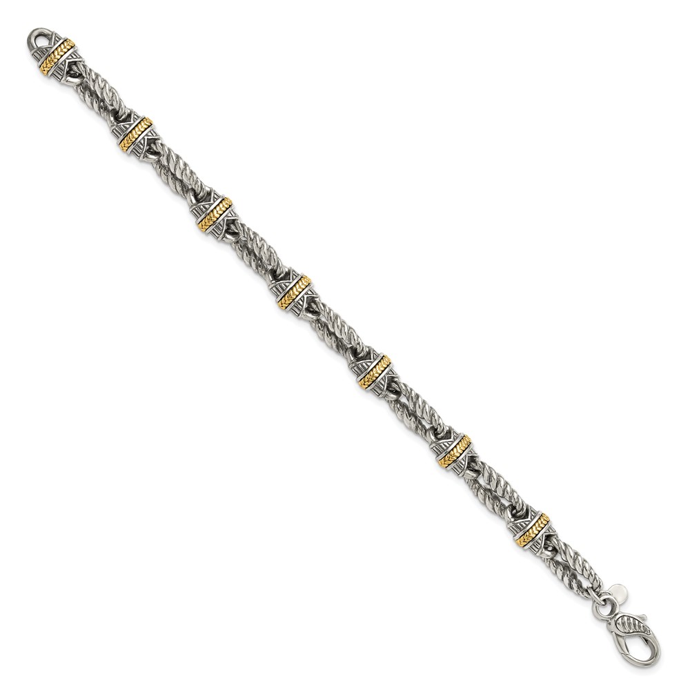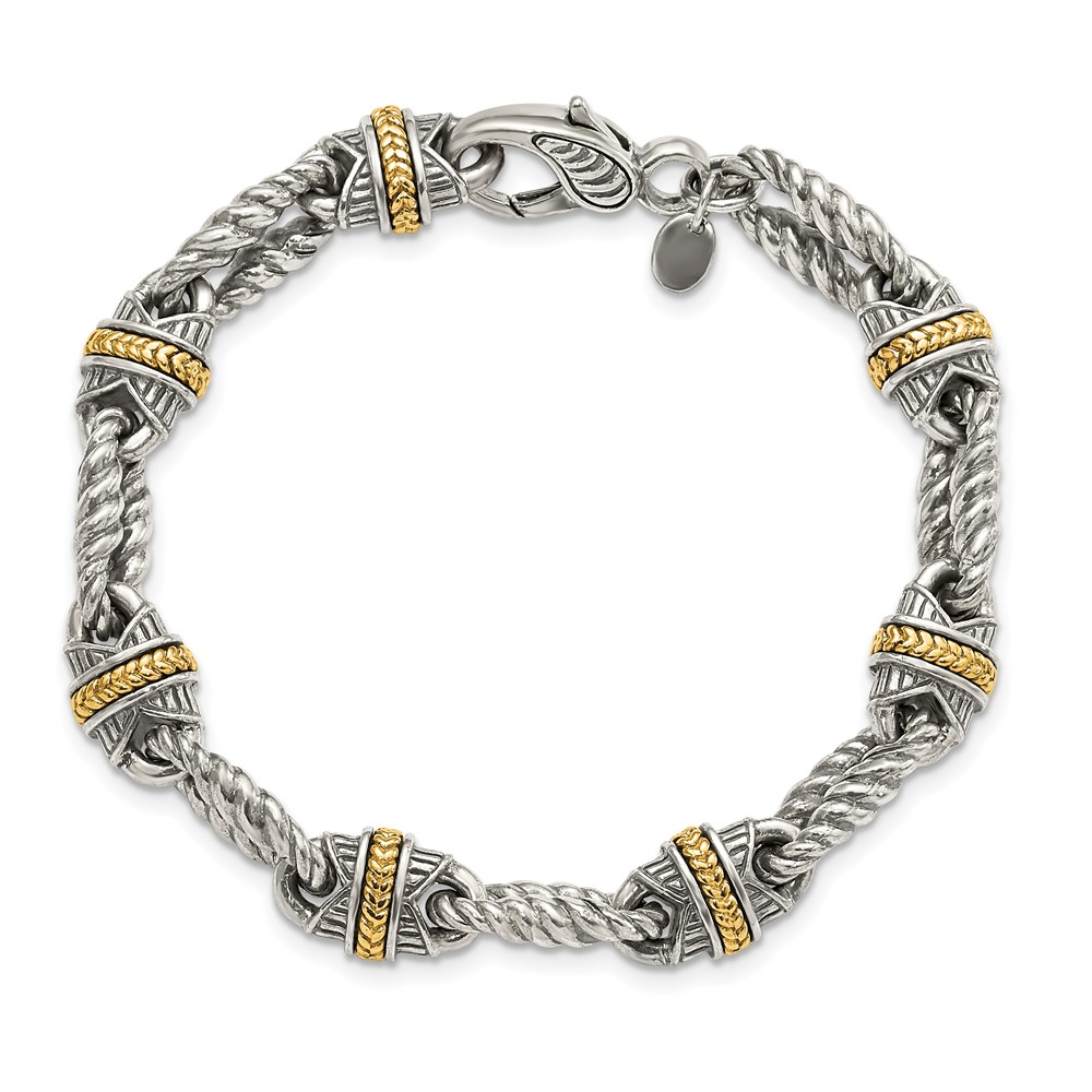 Sterling Silver w/14ky Accent Polished & Antiqued Link Bracelet