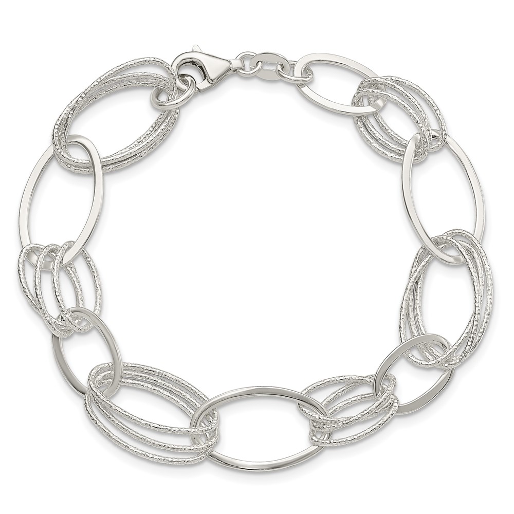 Sterling Silver Polished and Textured Oval Link Bracelet