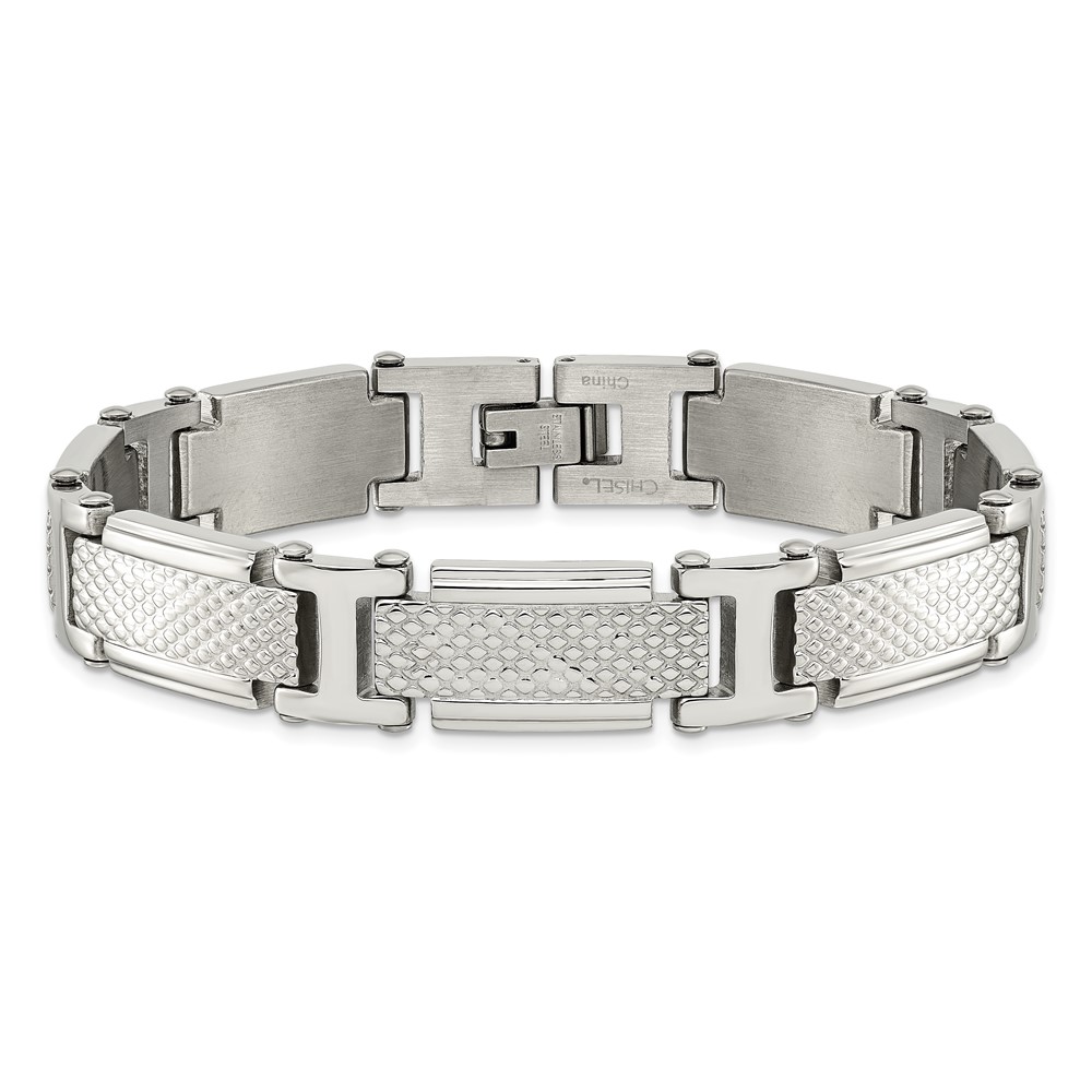 Chisel Stainless Steel Polished and Textured 8.5 inch Link Bracelet