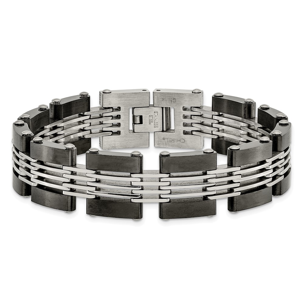 Chisel Stainless Steel Brushed and Polished Black IP-plated 8 inch Link Bracelet
