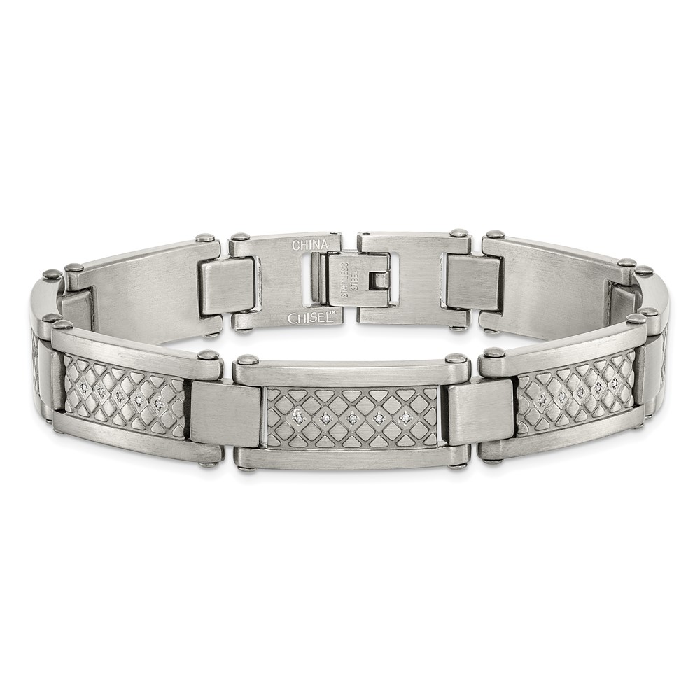 Chisel Stainless Steel Antiqued and Matte with 1/10 carat Diamond 9 inch Bracelet