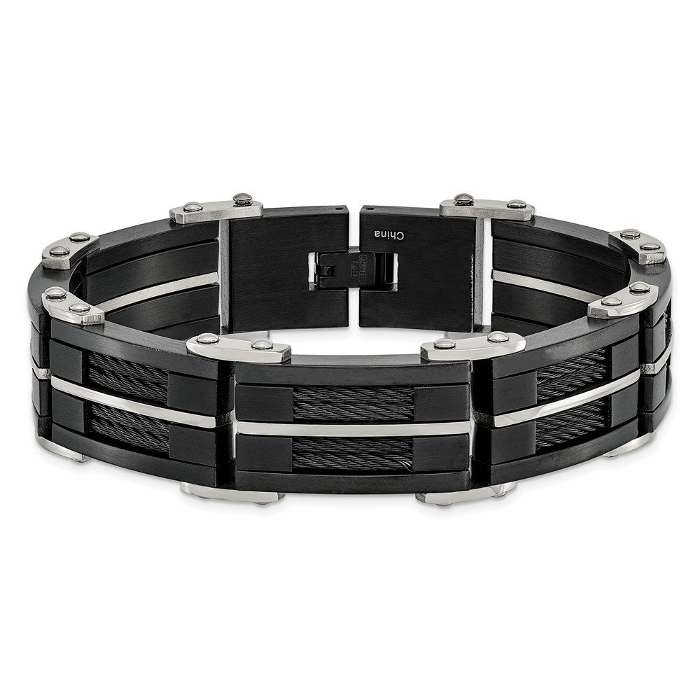 Chisel Stainless Steel Brushed and Polished Black IP-plated with Cable Inlay 8.75 inch Link Bracelet