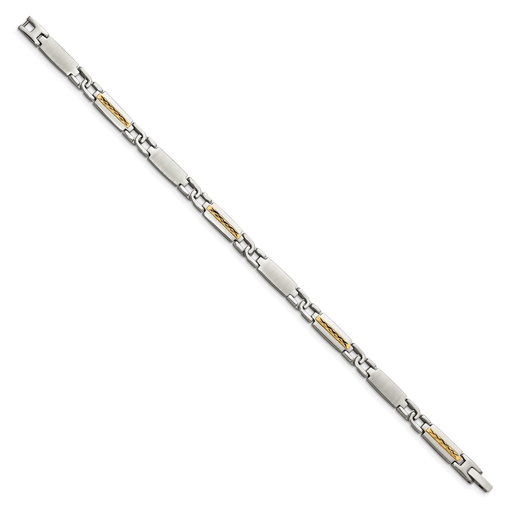 Chisel Stainless Steel with 14k Gold Accent Brushed and Polished 8.75 inch Link Bracelet