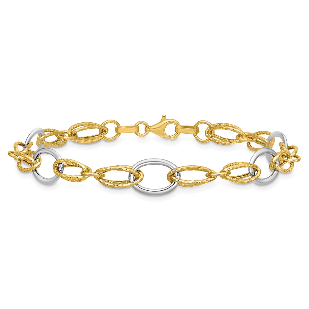 Leslie's 14K Two-tone Polished and Textured Fancy Link Bracelet