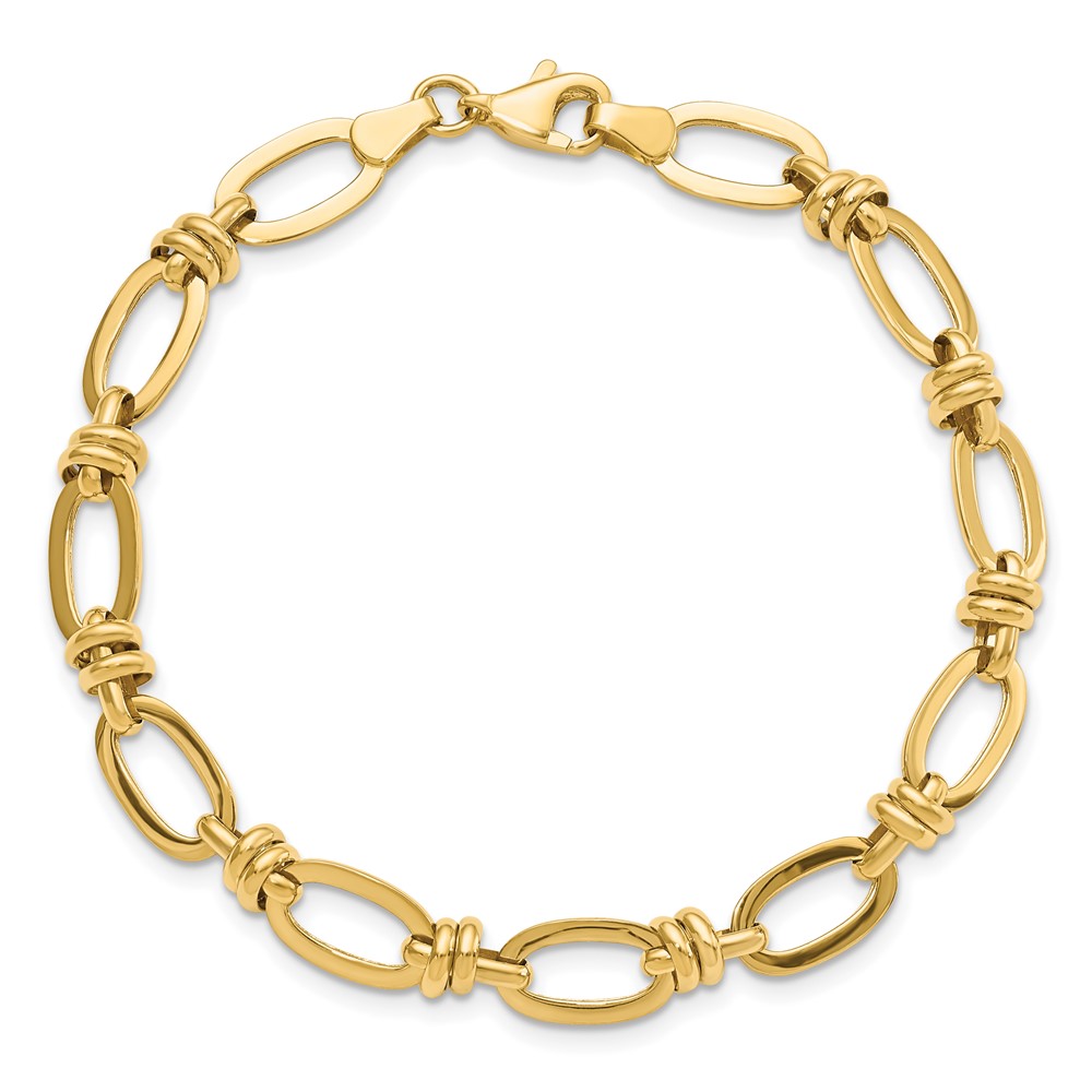 14k Polished And Brushed 7.5mm Fancy Oval and Round Link 7.25 inch Bracelet