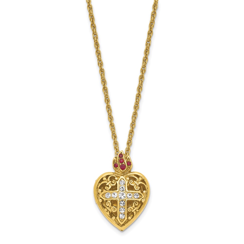 SOF Gold-tone 18in Red and Clear Crystal Sacred Heart Cross Locket Necklace