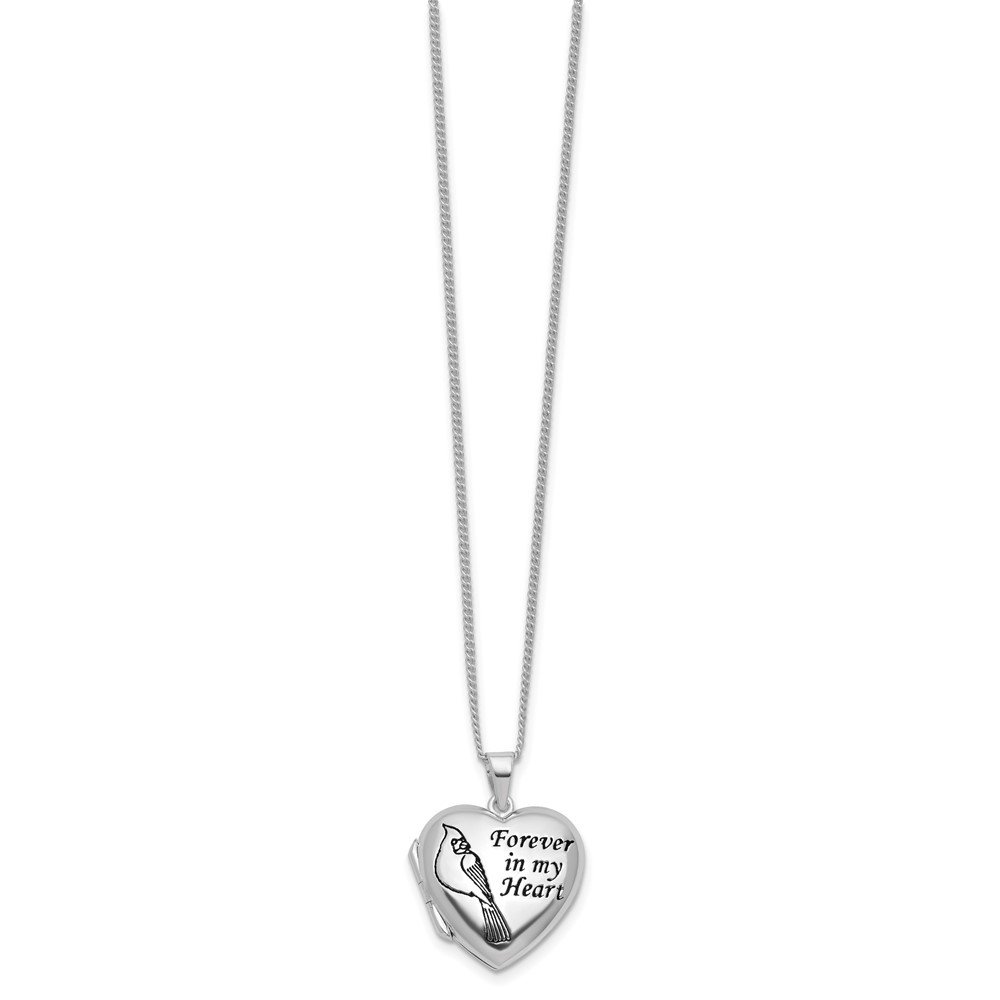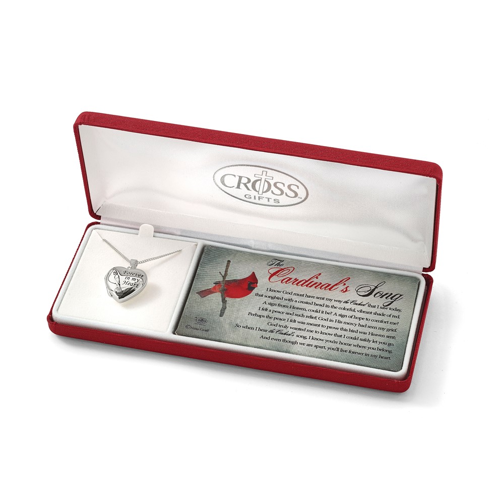 Silver-plated Metal Cardinals Song FOREVER IN MY HEART Locket 18 inch Necklace with Poem