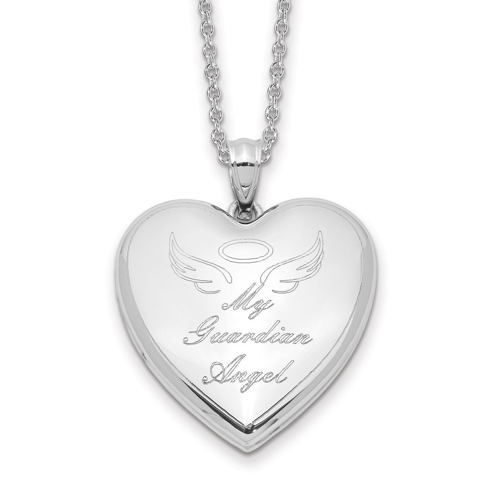Sterling Silver Rhod-pl Guardian Angel Ash Holder Heart Locket Necklace