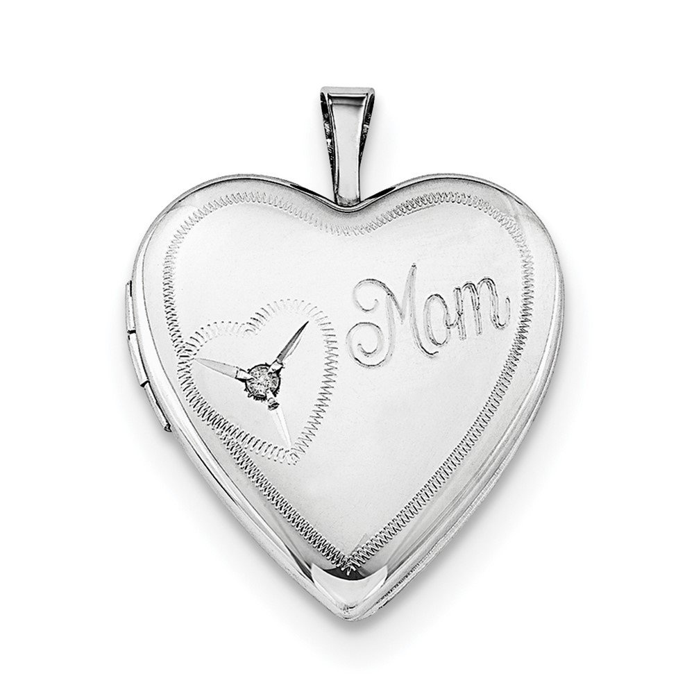 Sterling Silver Rhodium-plated 20mm Mom Diamond Heart Locket Necklace
