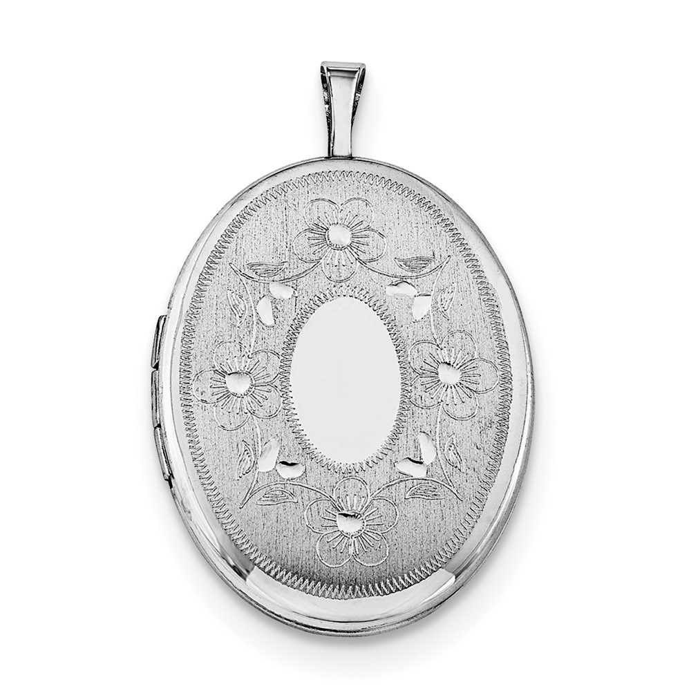 Sterling Silver RH-plated 26mm Floral Oval Locket Necklace