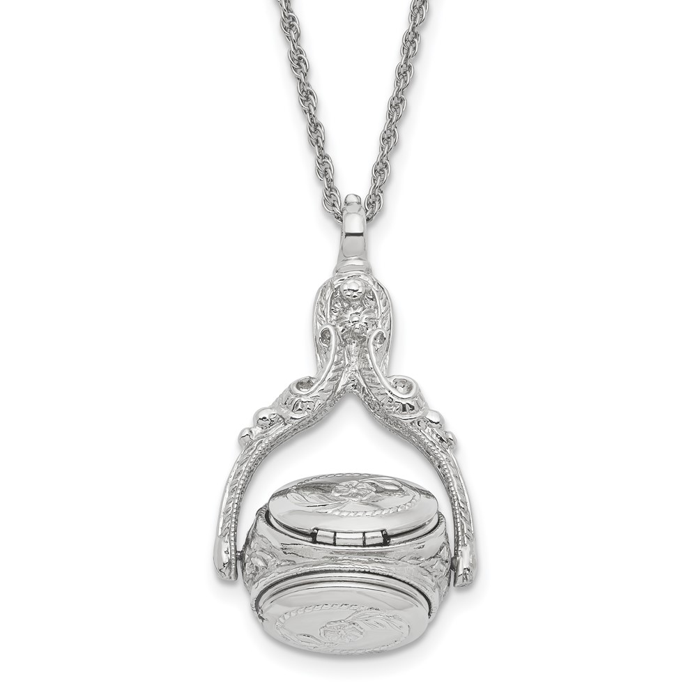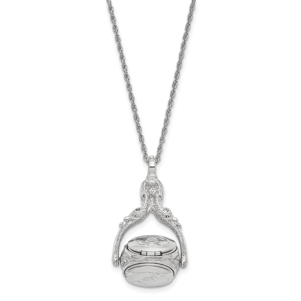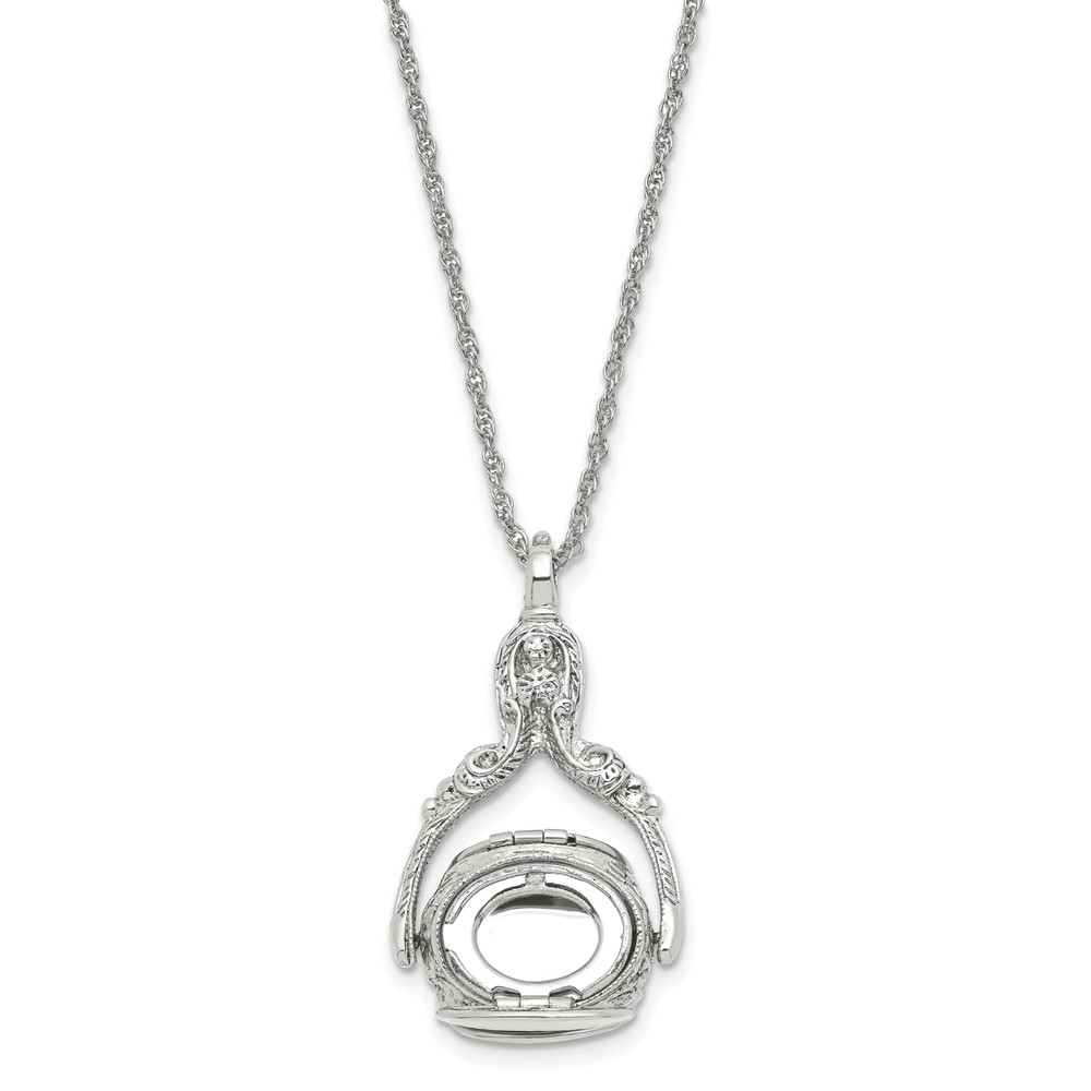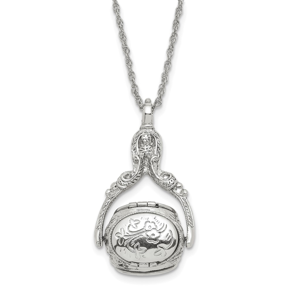 1928 Jewelry Silver-tone Three Sided Spinning Floral Pattern Oval 13mm Lockets 30 inch Necklace Holds 6 Photos