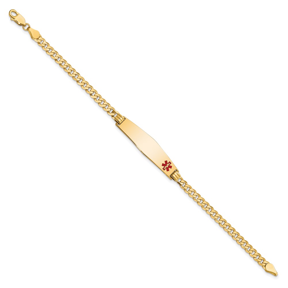 14K Medical Solid Chain/Solid Plate Soft Diamond Shape 33x8mm Off-Center Red Enamel Flat Curb Link 8 inch ID Bracelet