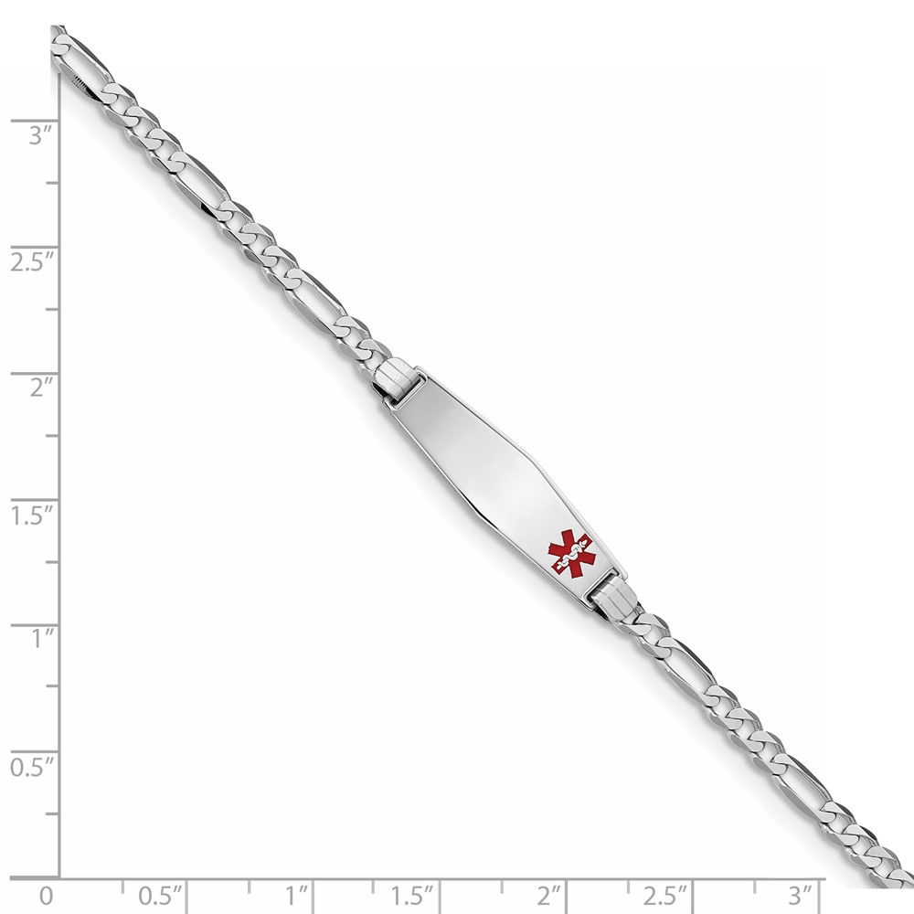 14K Medical Semi-Solid Chain/Solid Plate 37x6mm Centered Red Enamel Figaro Link 7 inch ID Bracelet