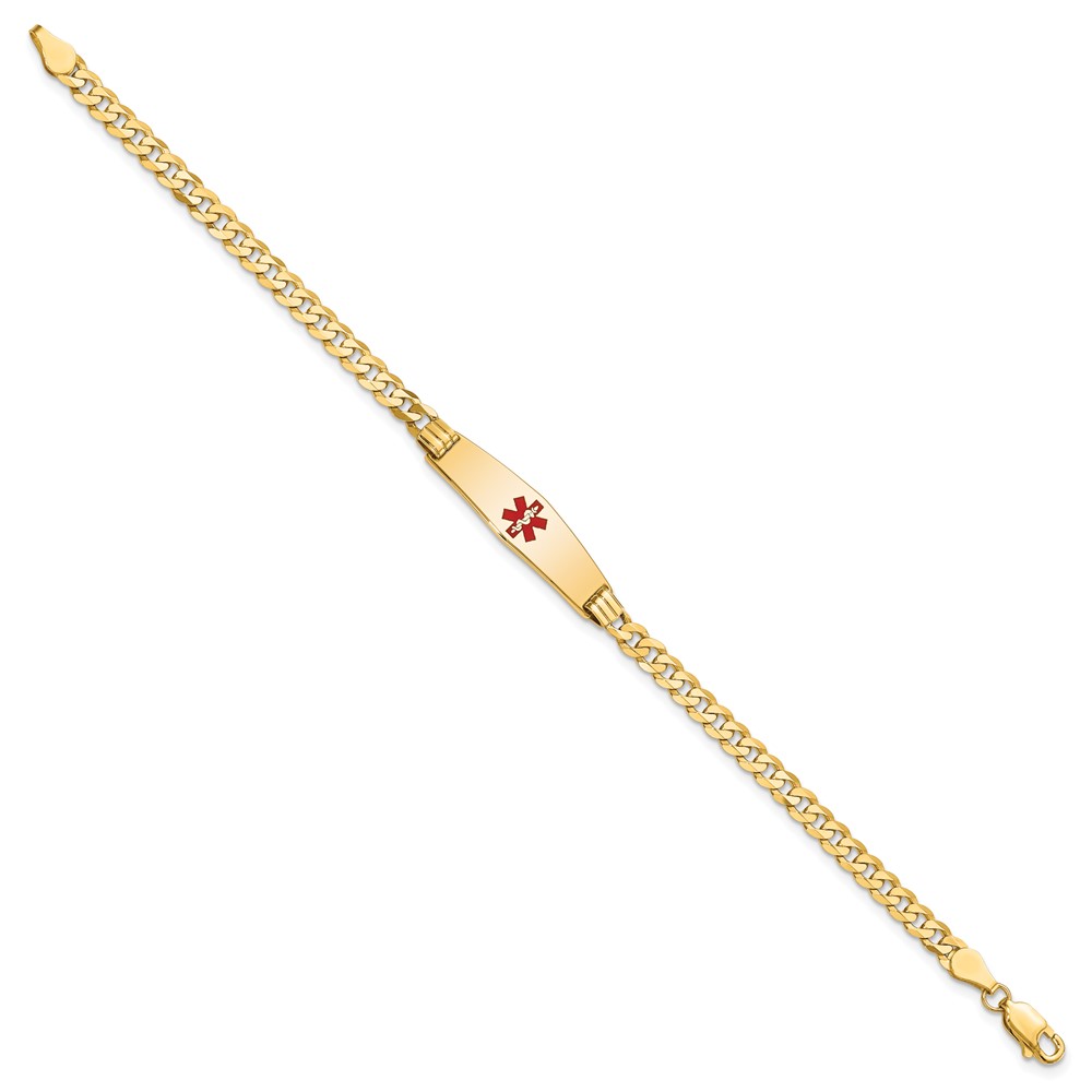 14K Medical Solid Chain/Solid Plate 24x7mm Soft Diamond Shape Centered Red Enamel Curb Link 8 inch ID Bracelet