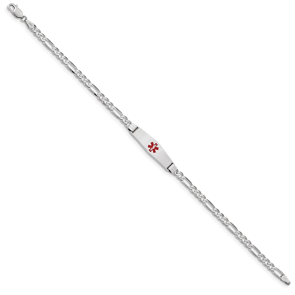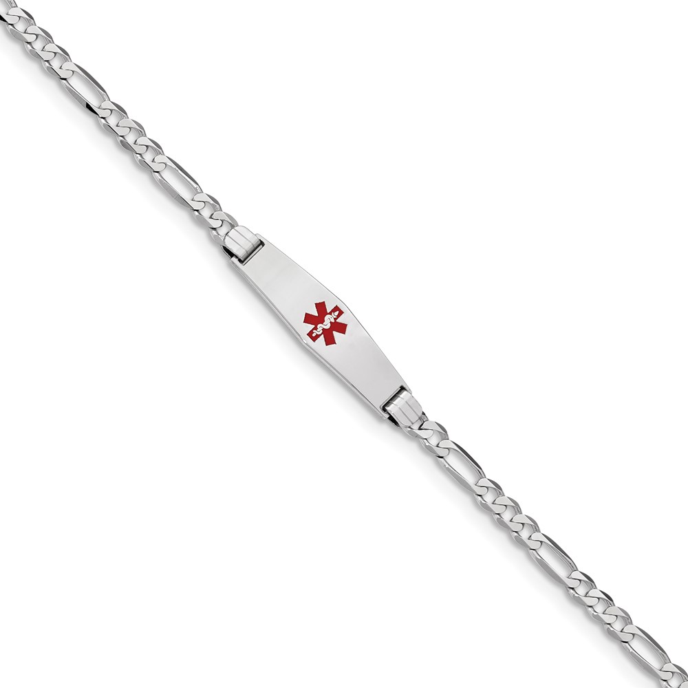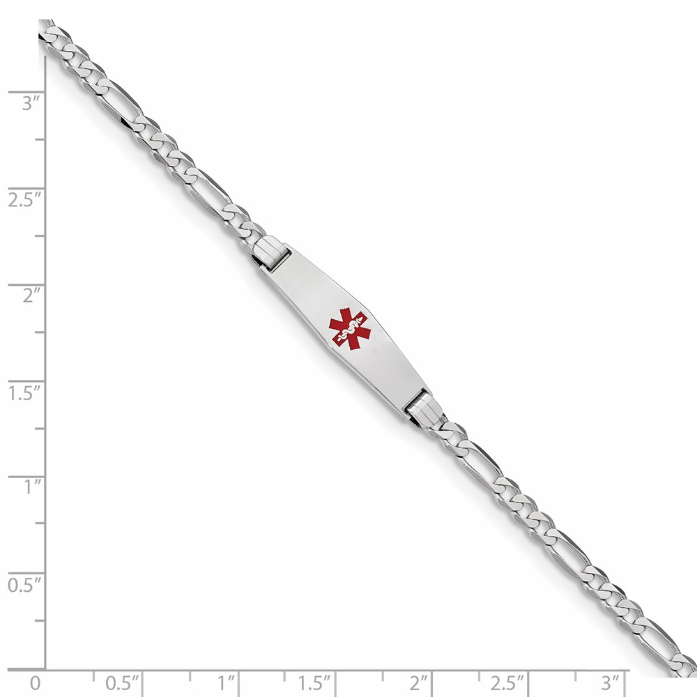14K WG Medical Soft Diamond Shape Red Enamel Figaro Link ID Bracelet