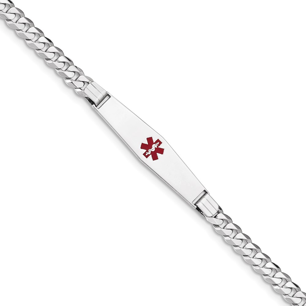 14K WG Medical Soft Diamond Shape Red Enamel Flat Curb Link ID Bracelet