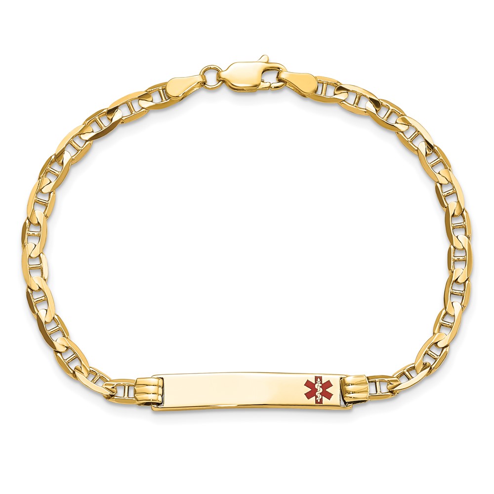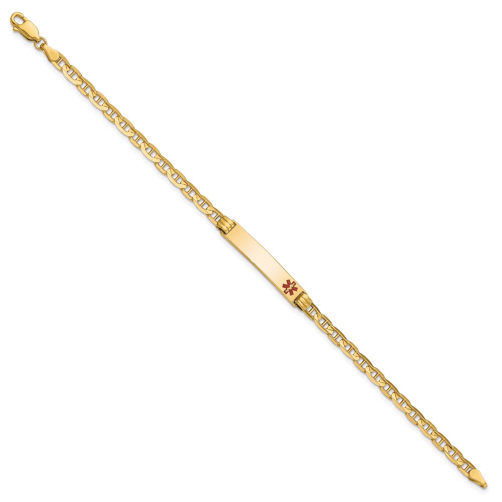 14K Medical Solid Chain/Solid Plate 37x6mm Centered Red Enamel Anchor Link 7 inch ID Bracelet