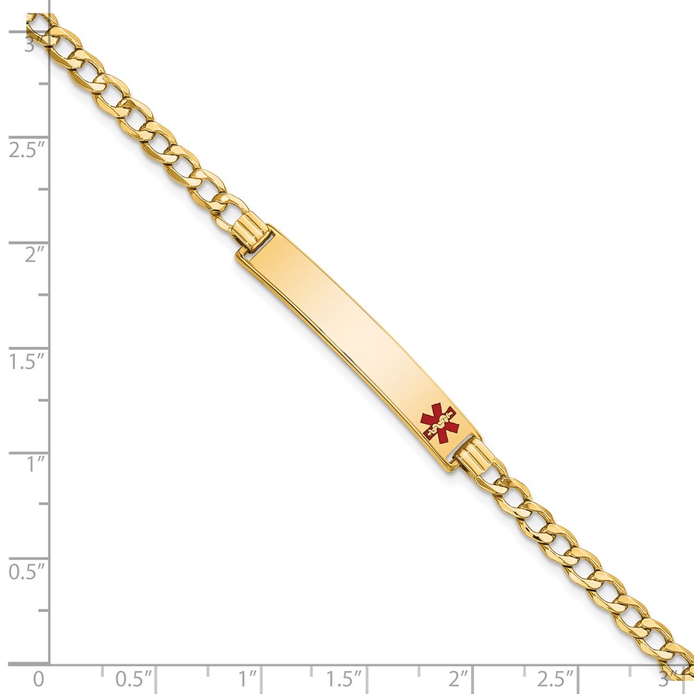 14K Medical Solid Chain/Solid Plate 26x5mm Centered Red Enamel Curb Link 8 inch ID Bracelet