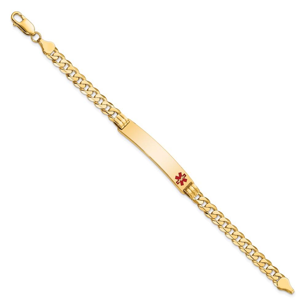14K Medical Semi-Solid Chain/Solid Plate 35x6mm Off-Center Red Enamel Curb Link 8 inch ID Bracelet