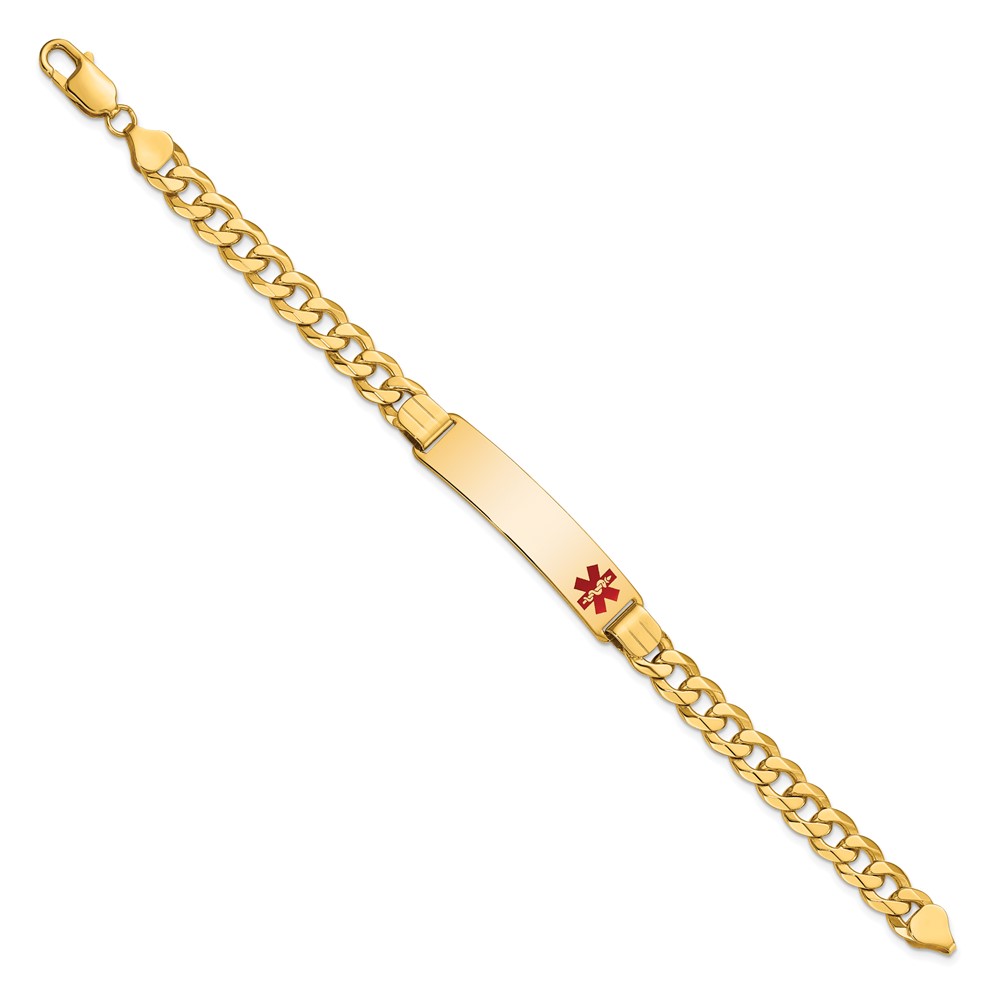14K Medical Solid Chain/Solid Plate 40x10mm Off-Center Red Enamel Flat Curb Link 8 inch ID Bracelet