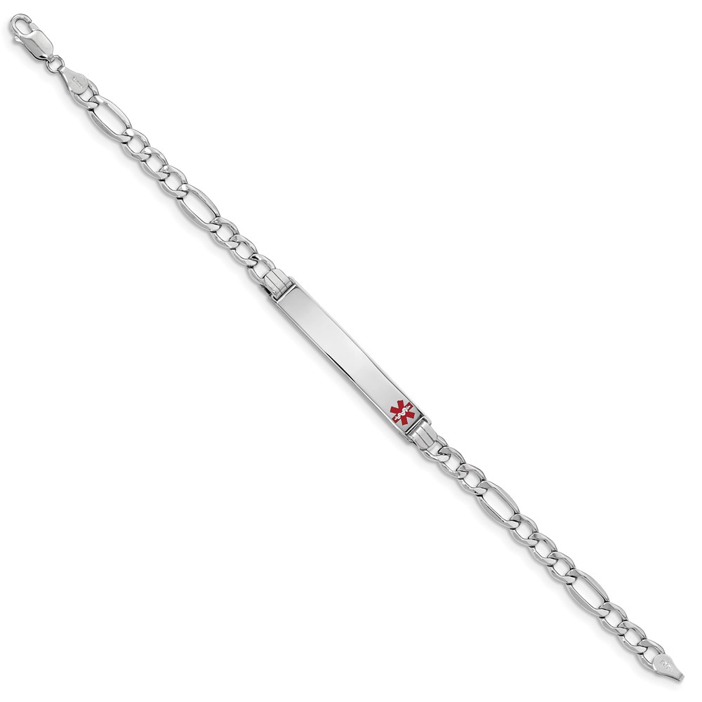 14K Medical Solid Chain/Solid Plate 40x10mm Centered Red Enamel Flat Figaro Link 7 inch ID Bracelet