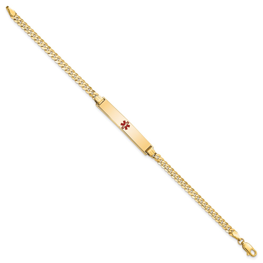 14K Medical Semi-Solid Chain/Solid Plate 37x6mm Centered Red Enamel Cuban Link 7 inch ID Bracelet