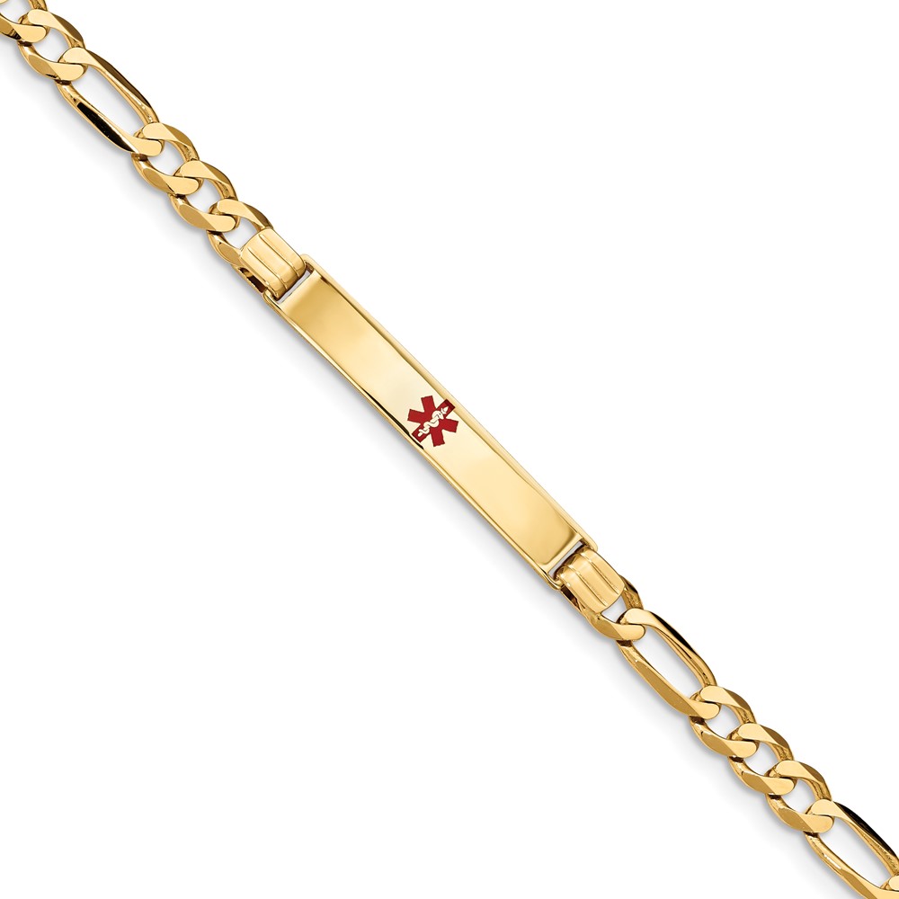 14K Medical Semi-Solid Chain/Solid Plate 26x5mm Centered Red Enamel Anchor Link 7 inch ID Bracelet