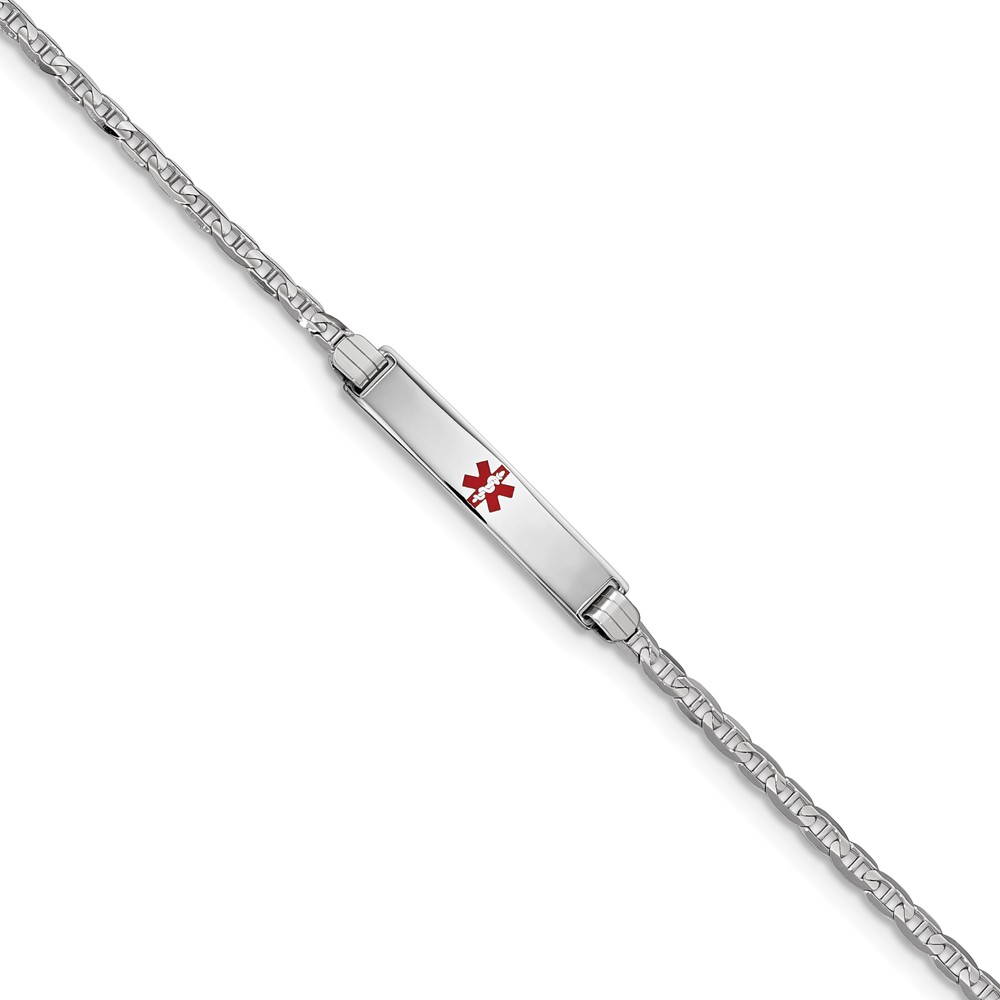 14K White Gold Medical Red Enamel Anchor Link ID Bracelet