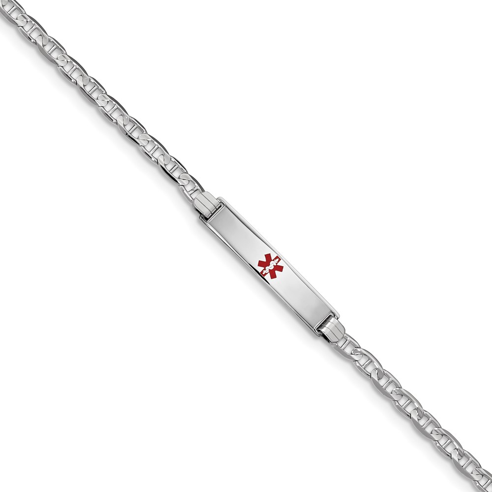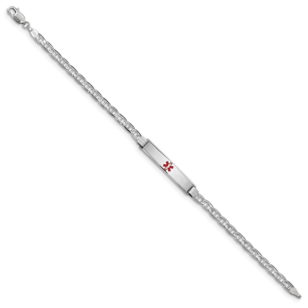 14K White Gold Medical Red Enamel Anchor Link ID Bracelet