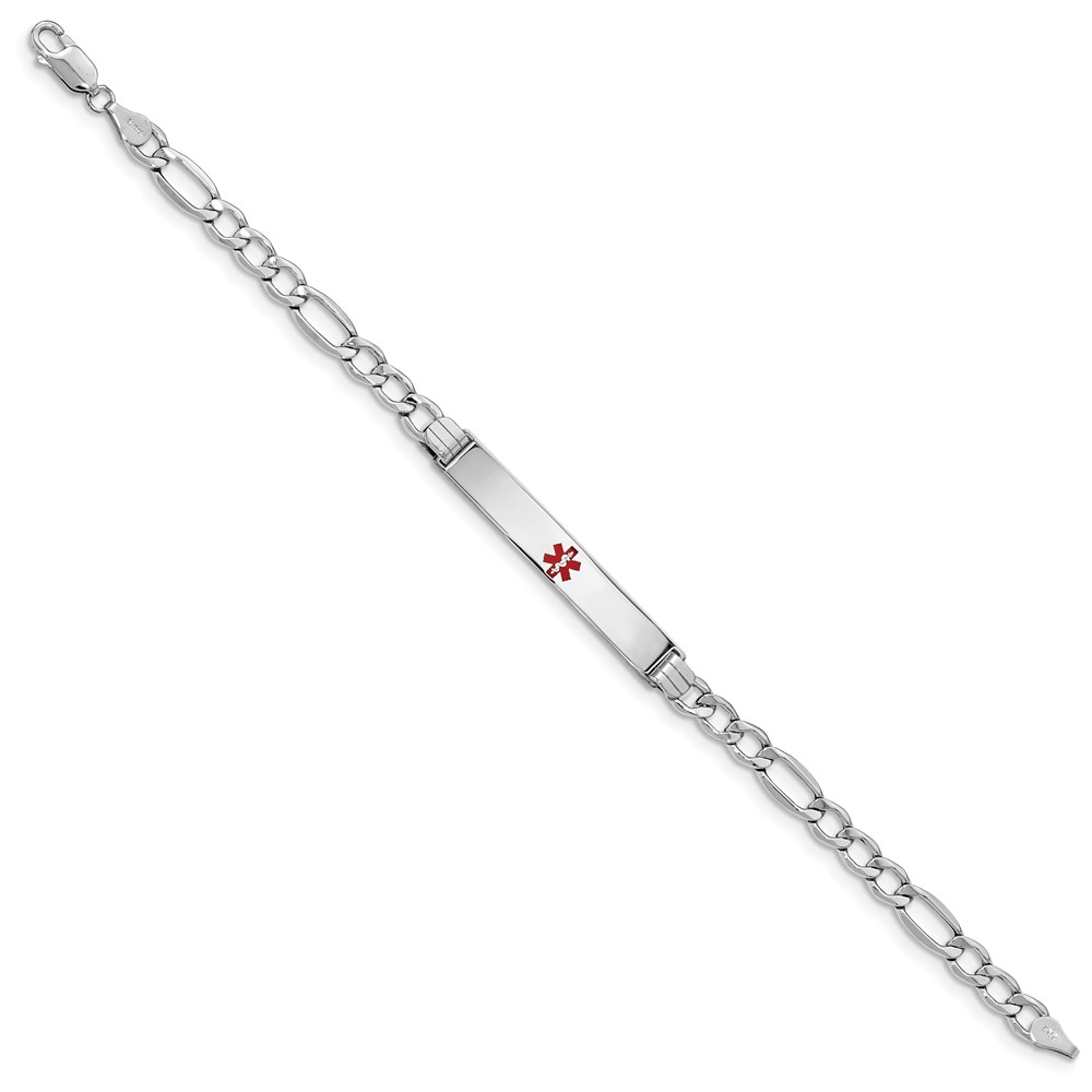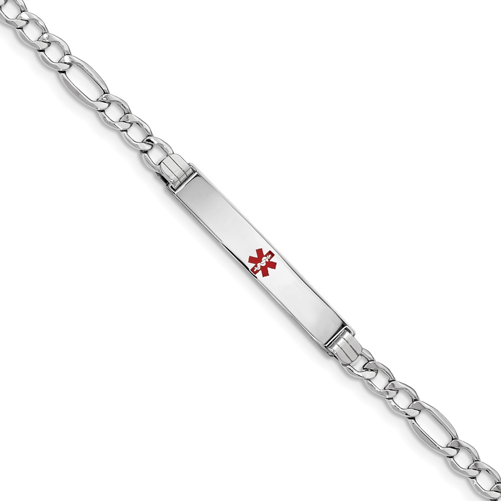 14K WG Semi-Solid Medical Polished Red Enamel Figaro ID Bracelet
