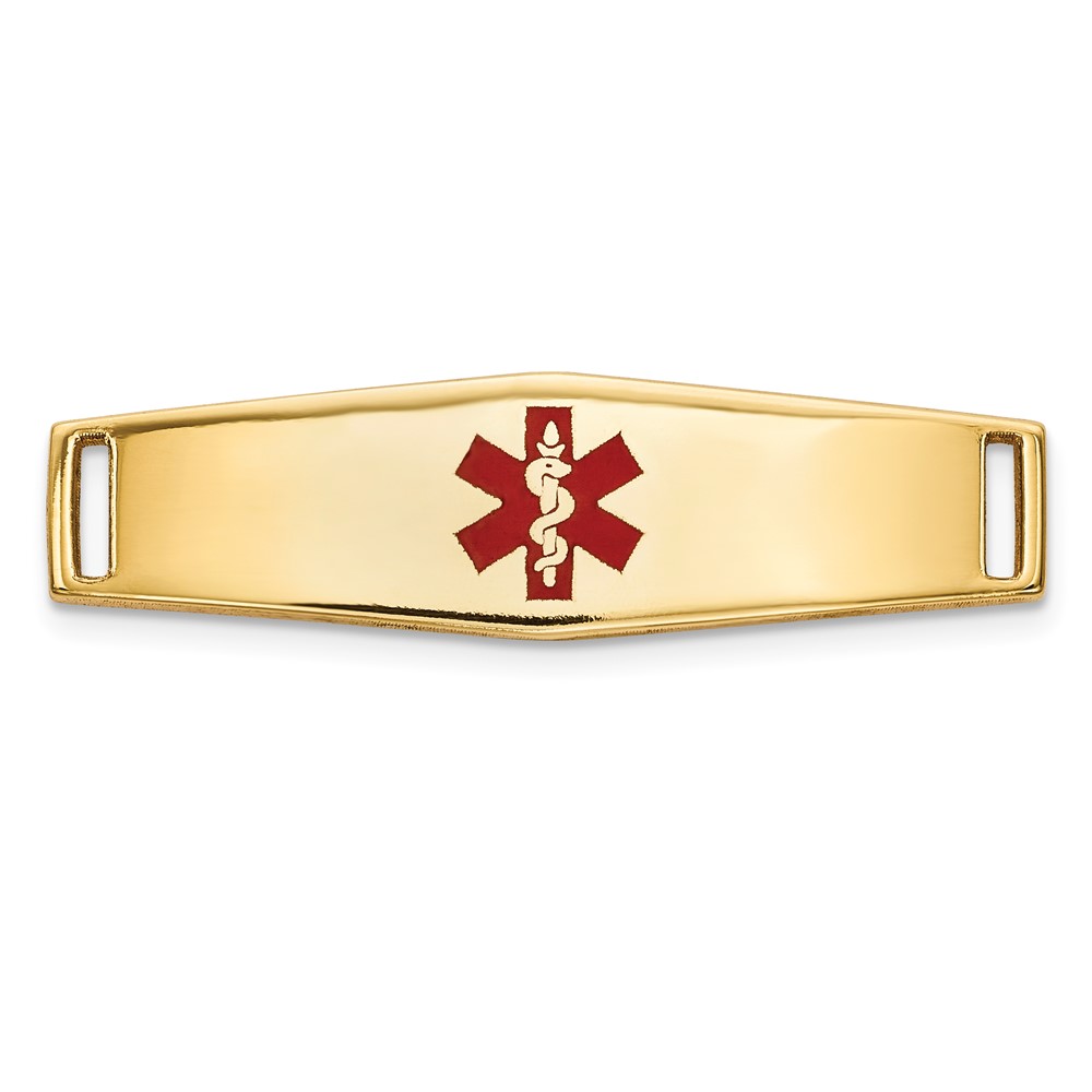 14k Polished 24x7mm Centered Red Epoxy Enameled Medical ID Soft Diamond Shape Plate # 816