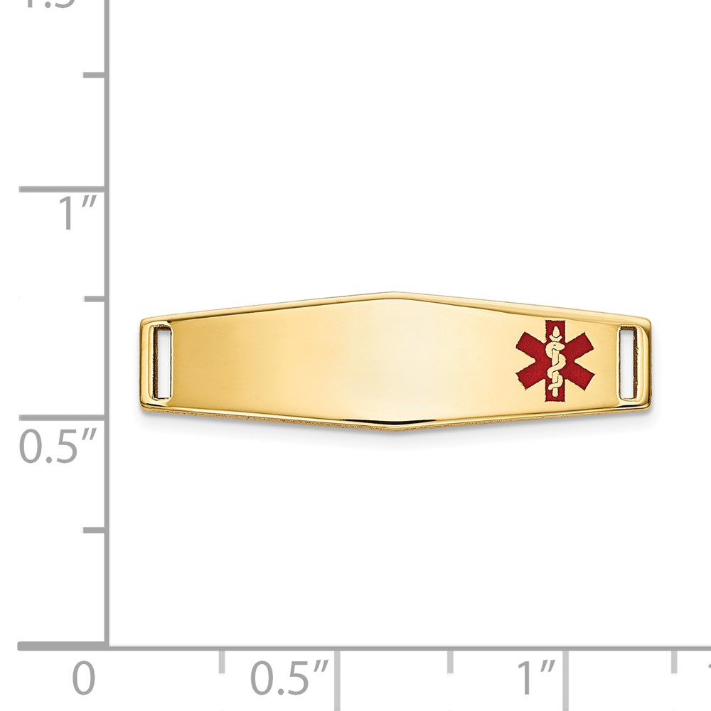 14k Polished 24x7mm Off-Center Red Epoxy Enameled Medical ID Soft Diamond Shape Plate # 816
