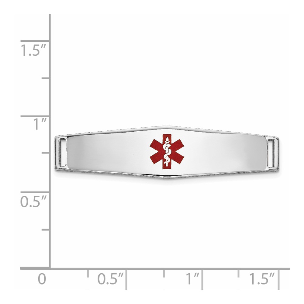 14K White Gold 34x9mm Centered Red Epoxy Enameled Soft Diamond Shape Medical ID Plate # 817