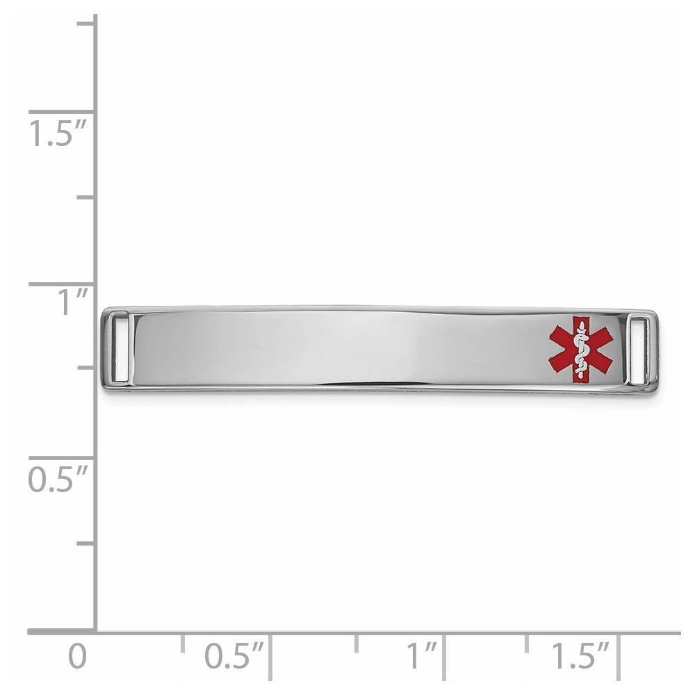 14K White Gold 36x6mm Off-Center Red Epoxy Enameled Medical ID Plate # 818
