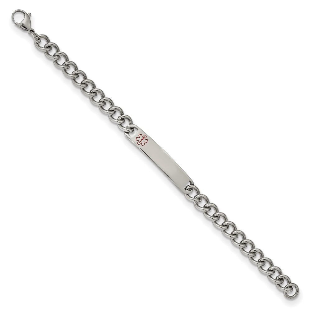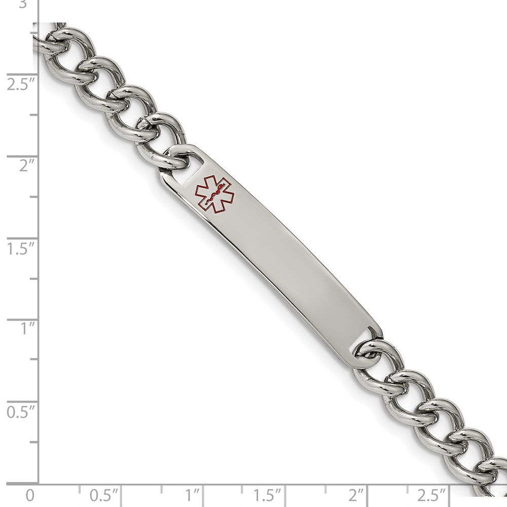 Chisel Stainless Steel Polished with Red Enamel Medical ID 8 inch Curb Chain Bracelet