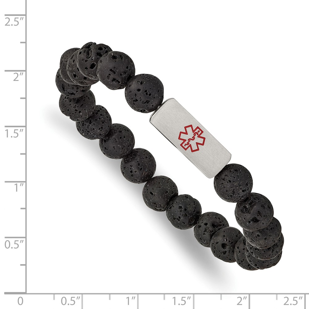 Stainless Steel Brushed Medical ID Lava Stone Stretch Bracelet