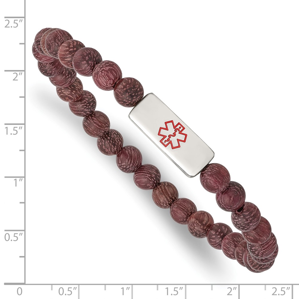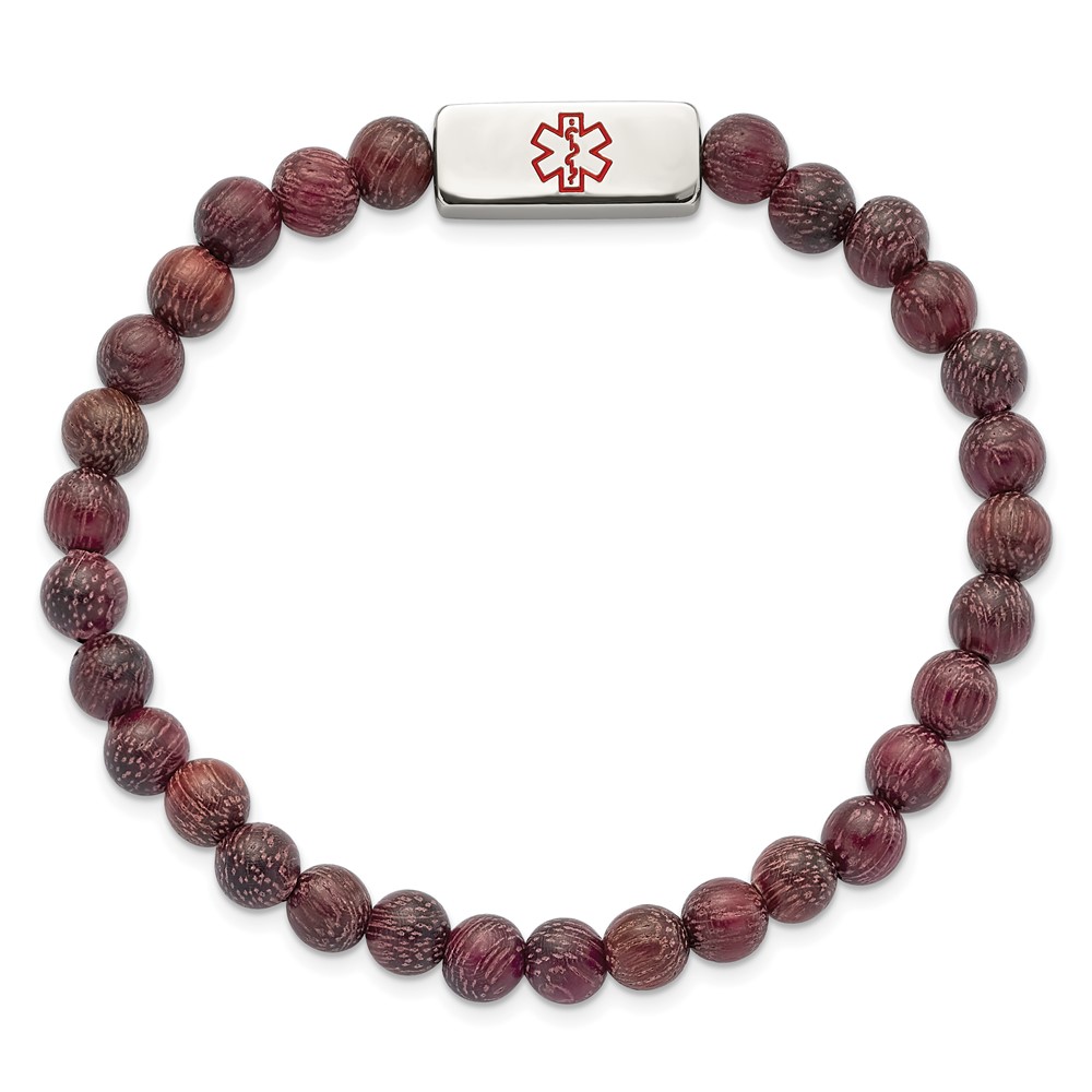 Stainless Steel Polished with Enamel Medical ID Peltogyne Wood Bracelet