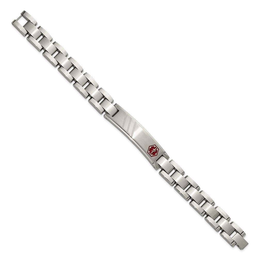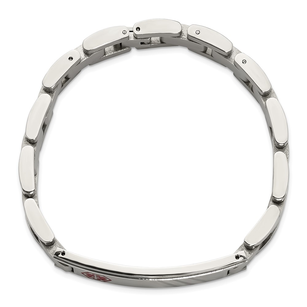 Chisel Stainless Steel Brushed and Polished with Red Enamel Medical ID 8.25 inch Bracelet