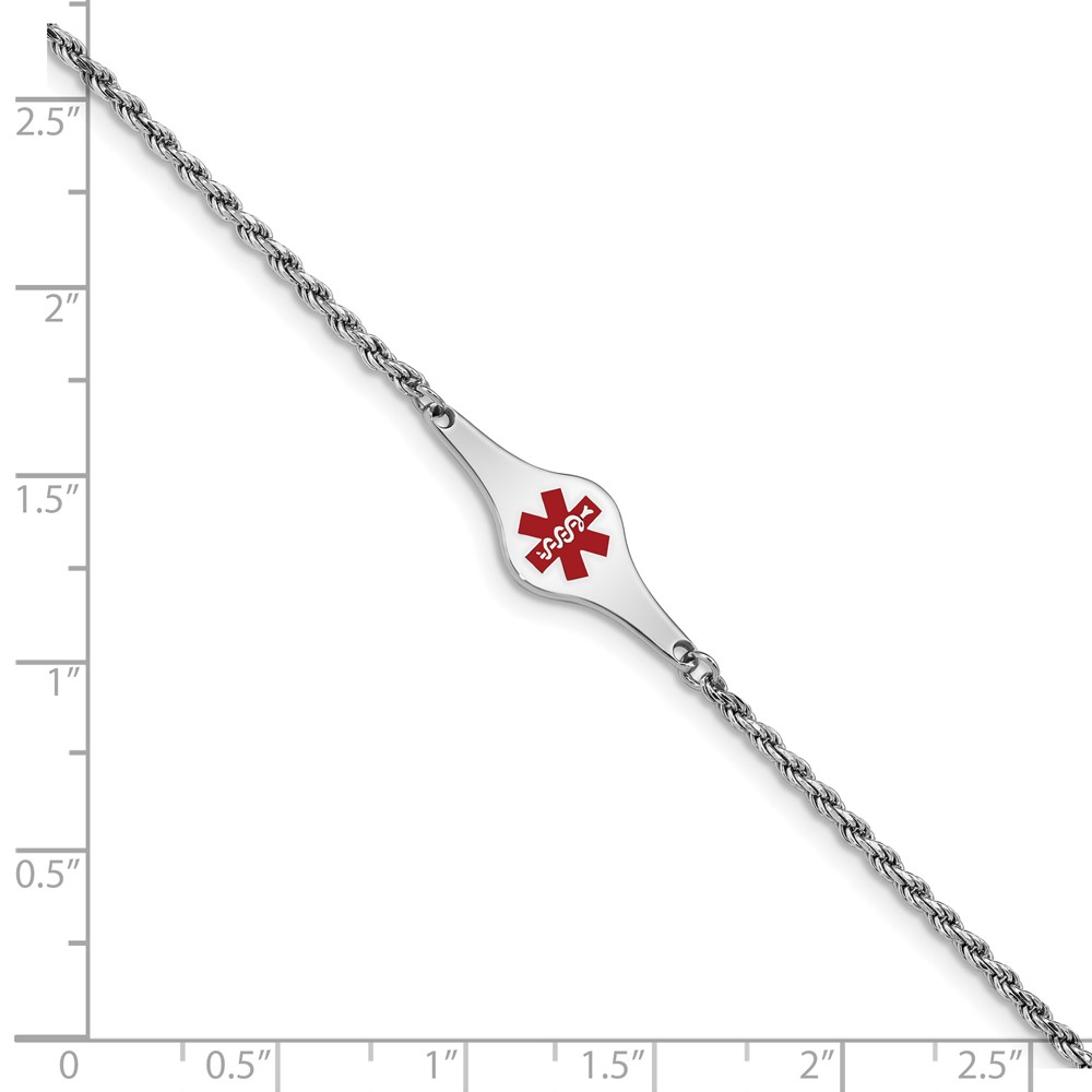 Sterling Silver Rhodium-plated Medical ID Rope Link Bracelet