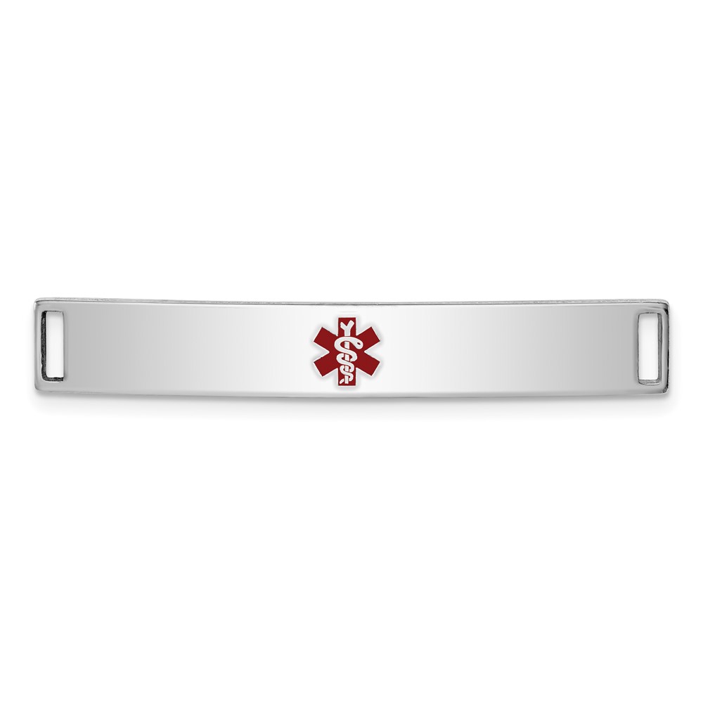 14K Medical Solid Chain/Solid Plate 40x10mm Centered Red Enamel Curb Link 7 inch ID Bracelet