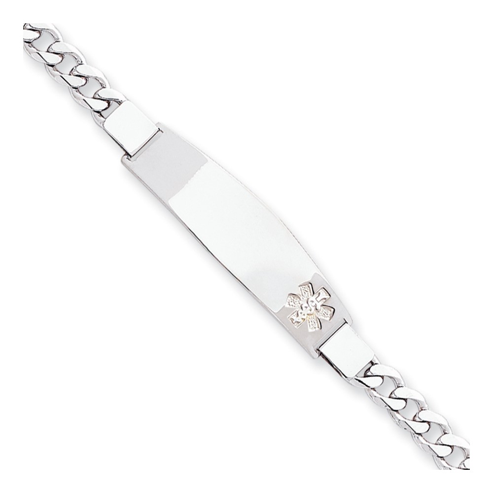 Sterling Silver Rhod-plated Non-enameled Medical ID Curb Link Bracelet