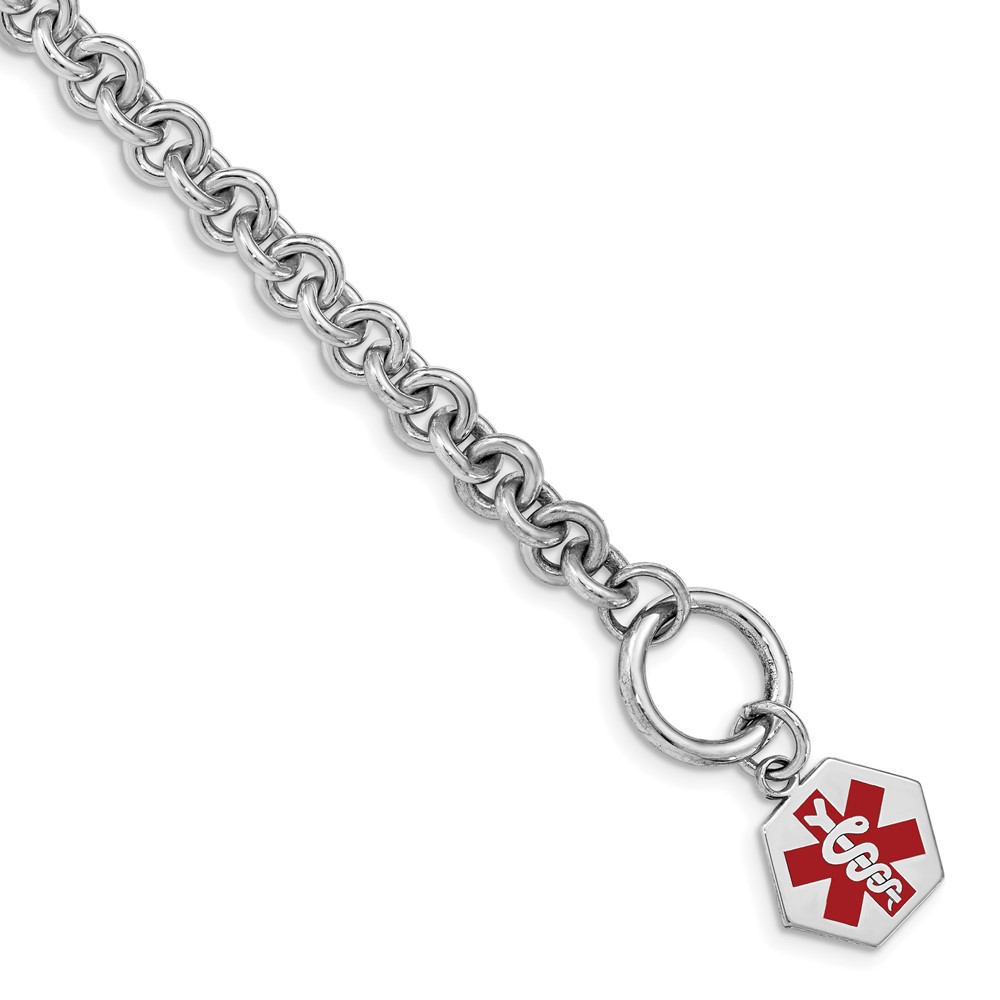 Sterling Silver Rhodium Engraveable Enamel Hexagon Medical ID Bracelet