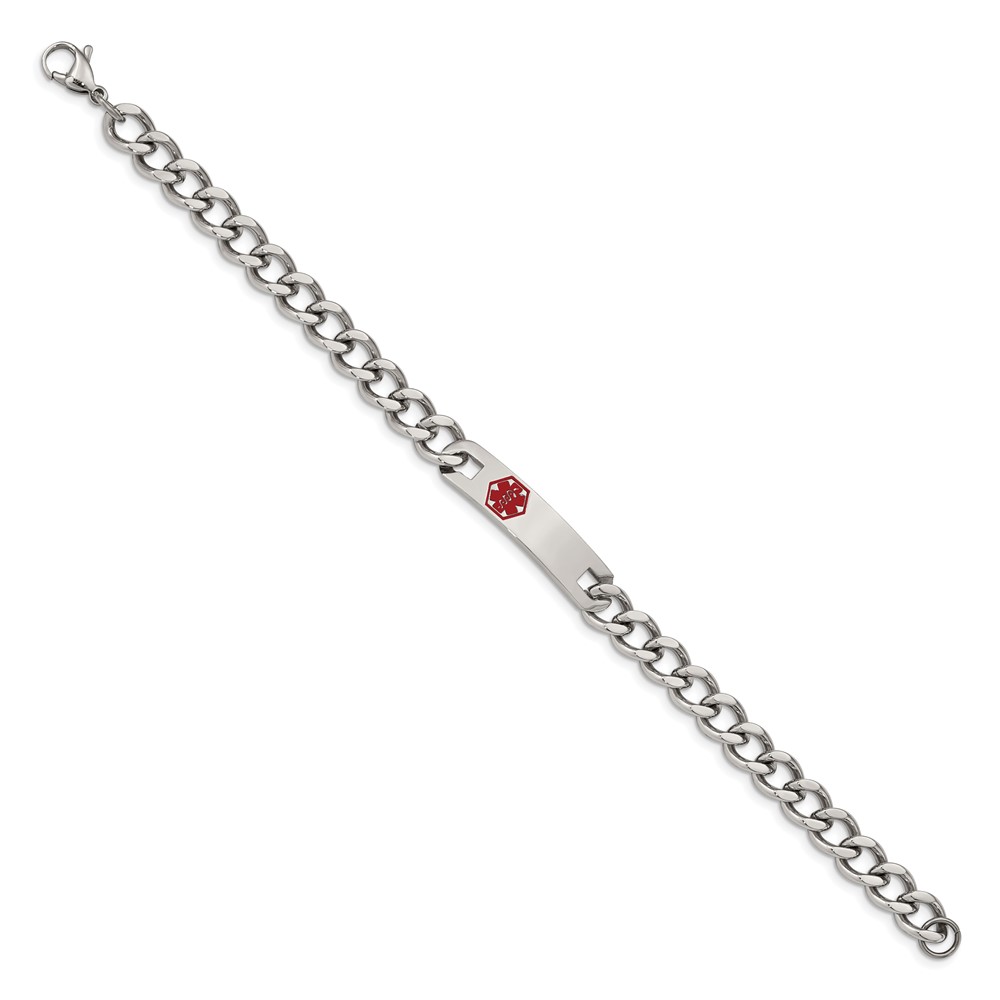 Chisel Stainless Steel Polished with Red Enamel Medical ID 9.5 inch Curb Chain Bracelet