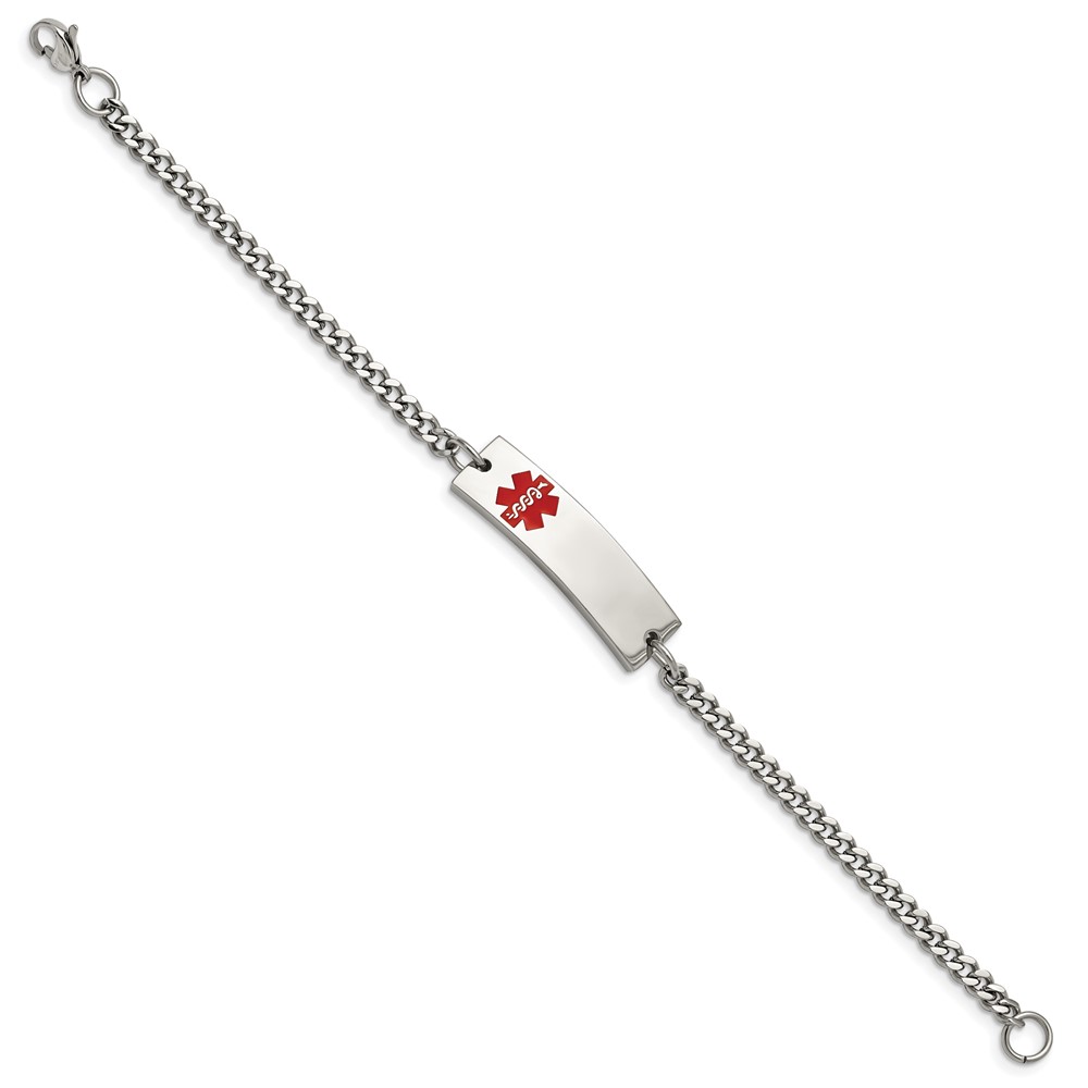 Chisel Stainless Steel Polished with Red Enamel Medical ID 8.75 inch Curb Chain Bracelet