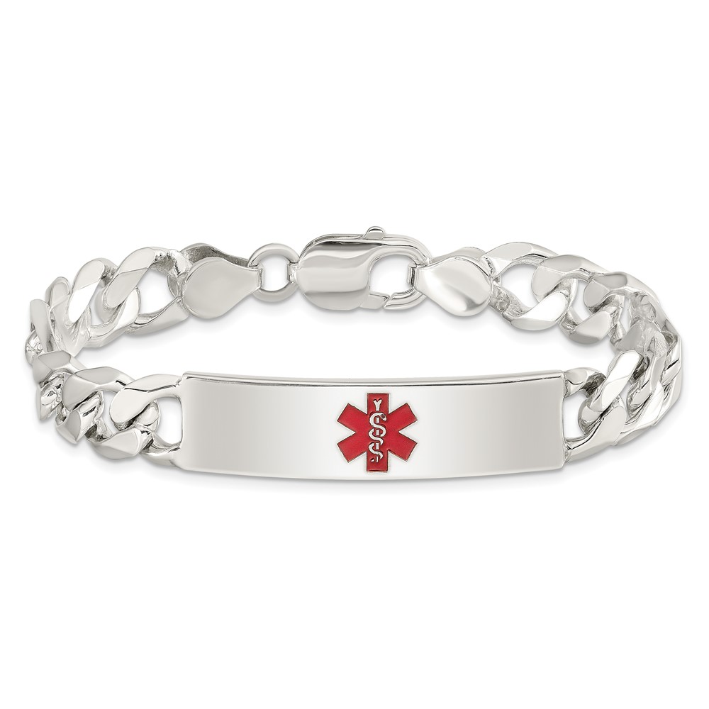 14K Medical Semi-Solid Chain/Solid Plate 34x6mm Centered Red Enamel Curb Link 8 inch ID Bracelet