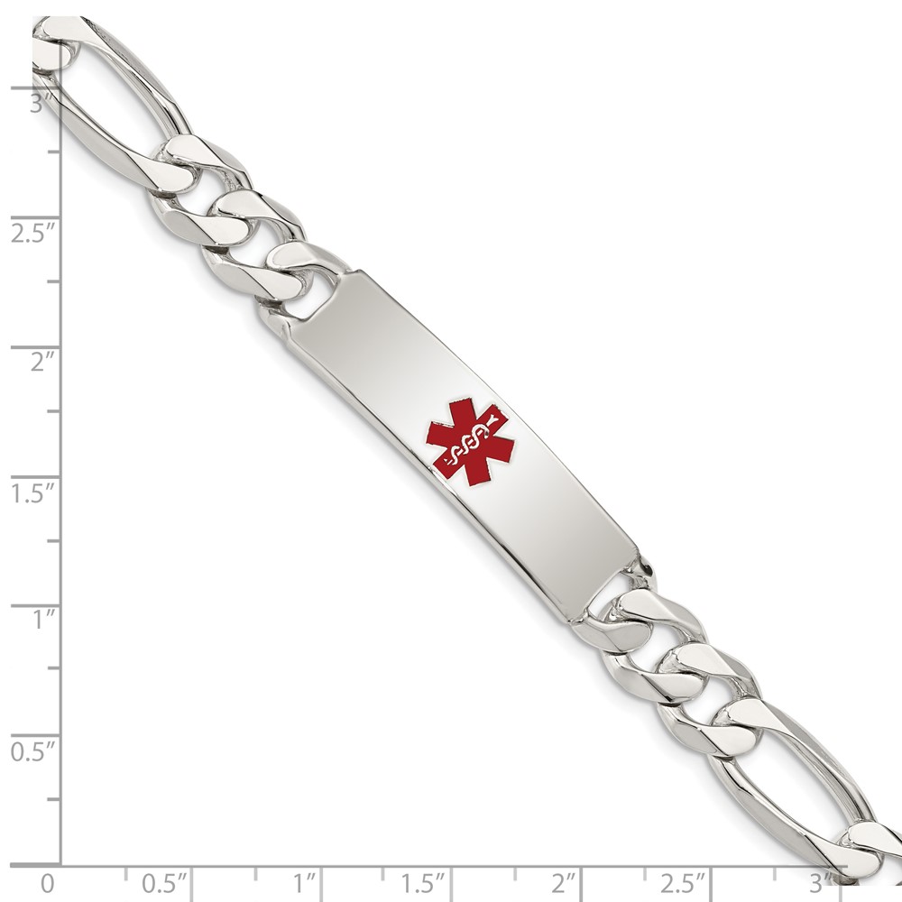 Sterling Silver Polished Medical Figaro Anchor Link ID Bracelet