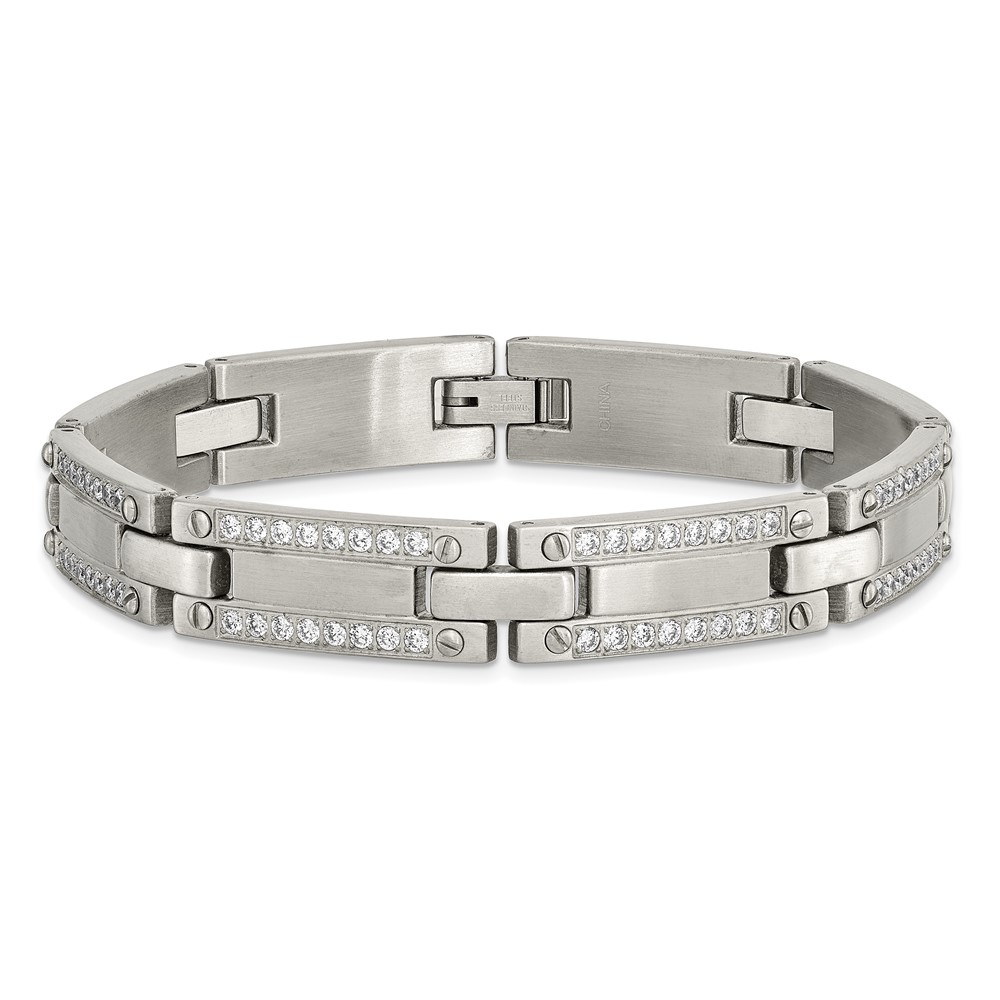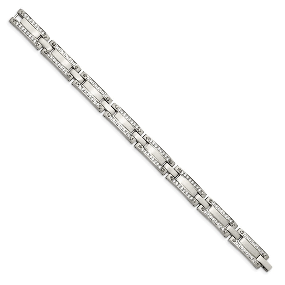 Stainless Steel Brushed with CZ 8.5in Bracelet