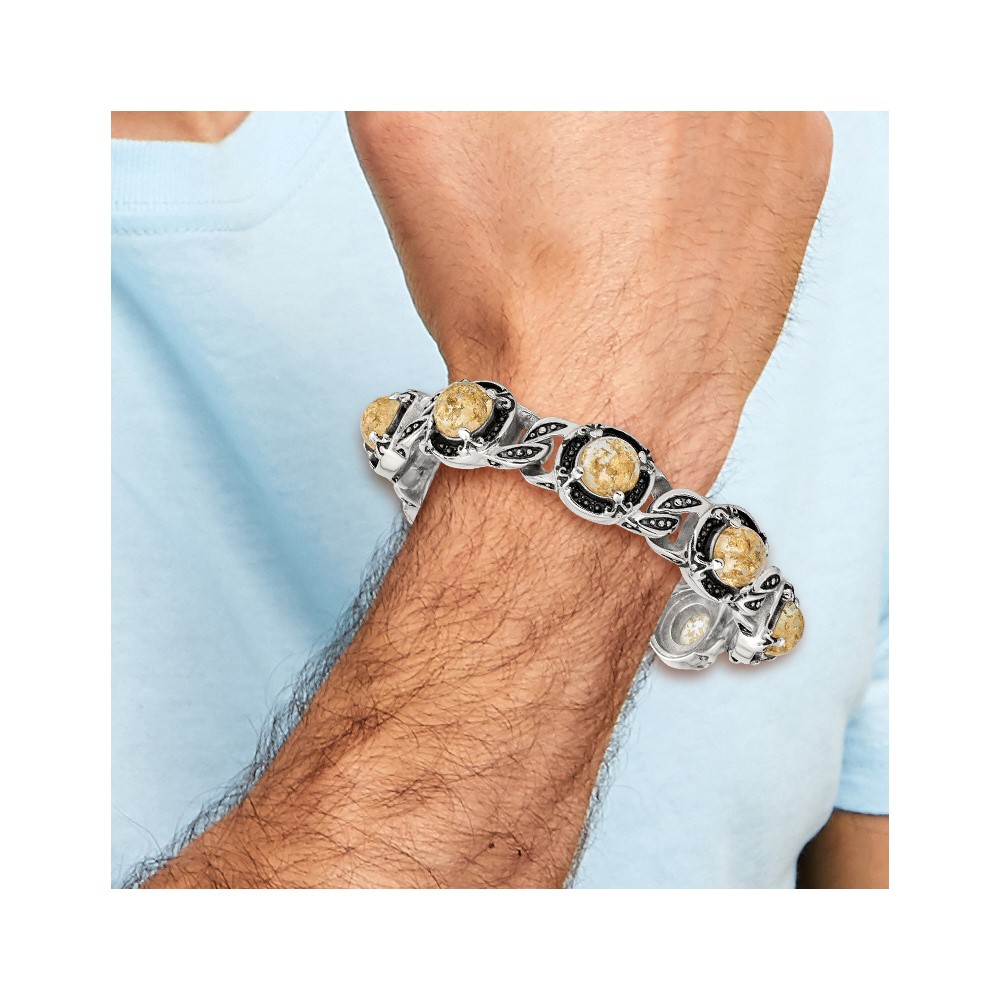 Chisel Stainless Steel Antiqued and Polished with Gold Tin Epoxy Resin 9 inch Link Bracelet