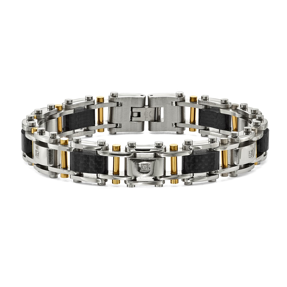 Stainless Steel Black Carbon Fiber w/ yellow IP .07 TCW Bracelet